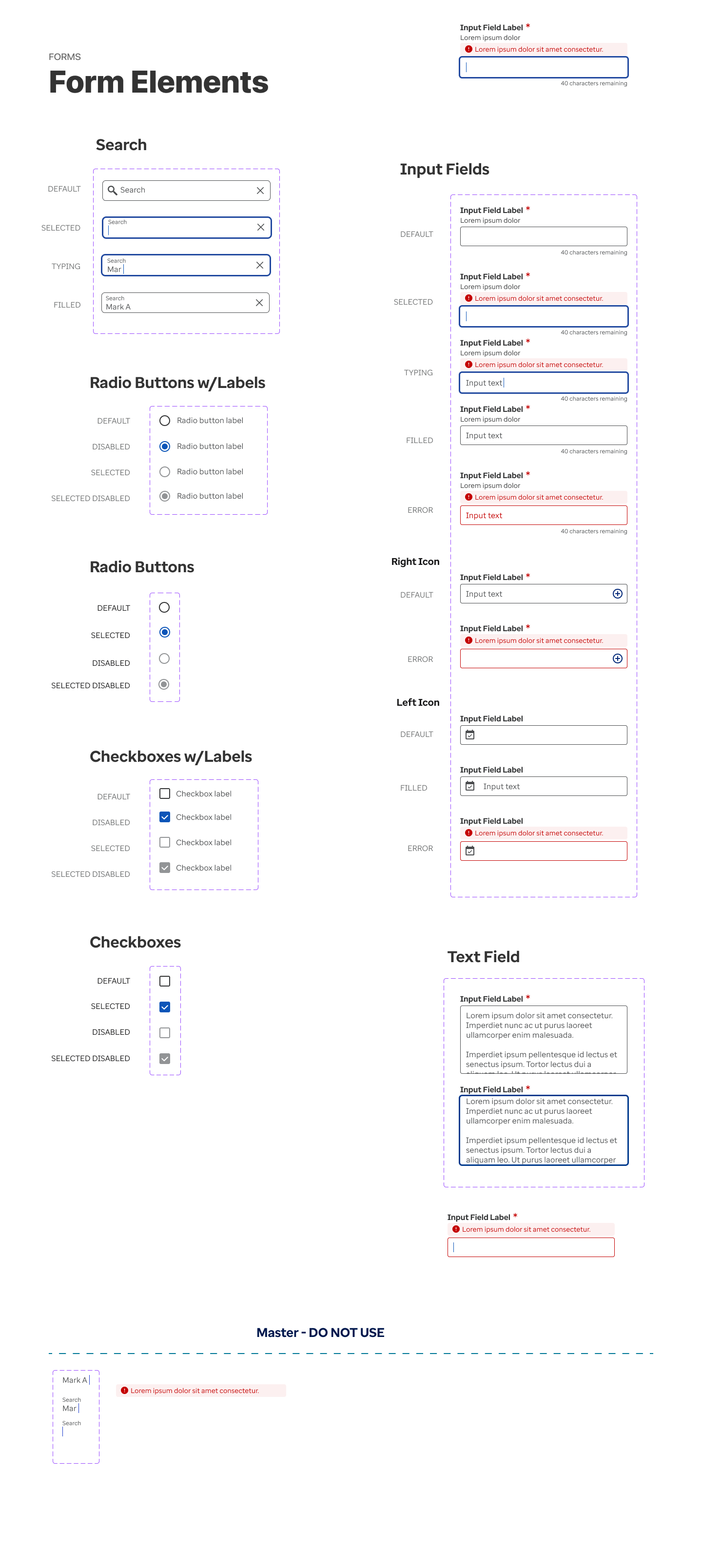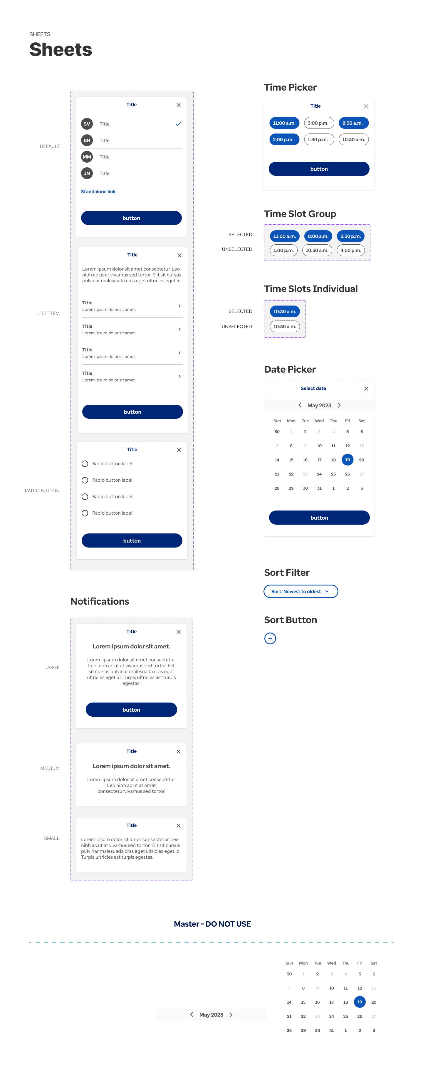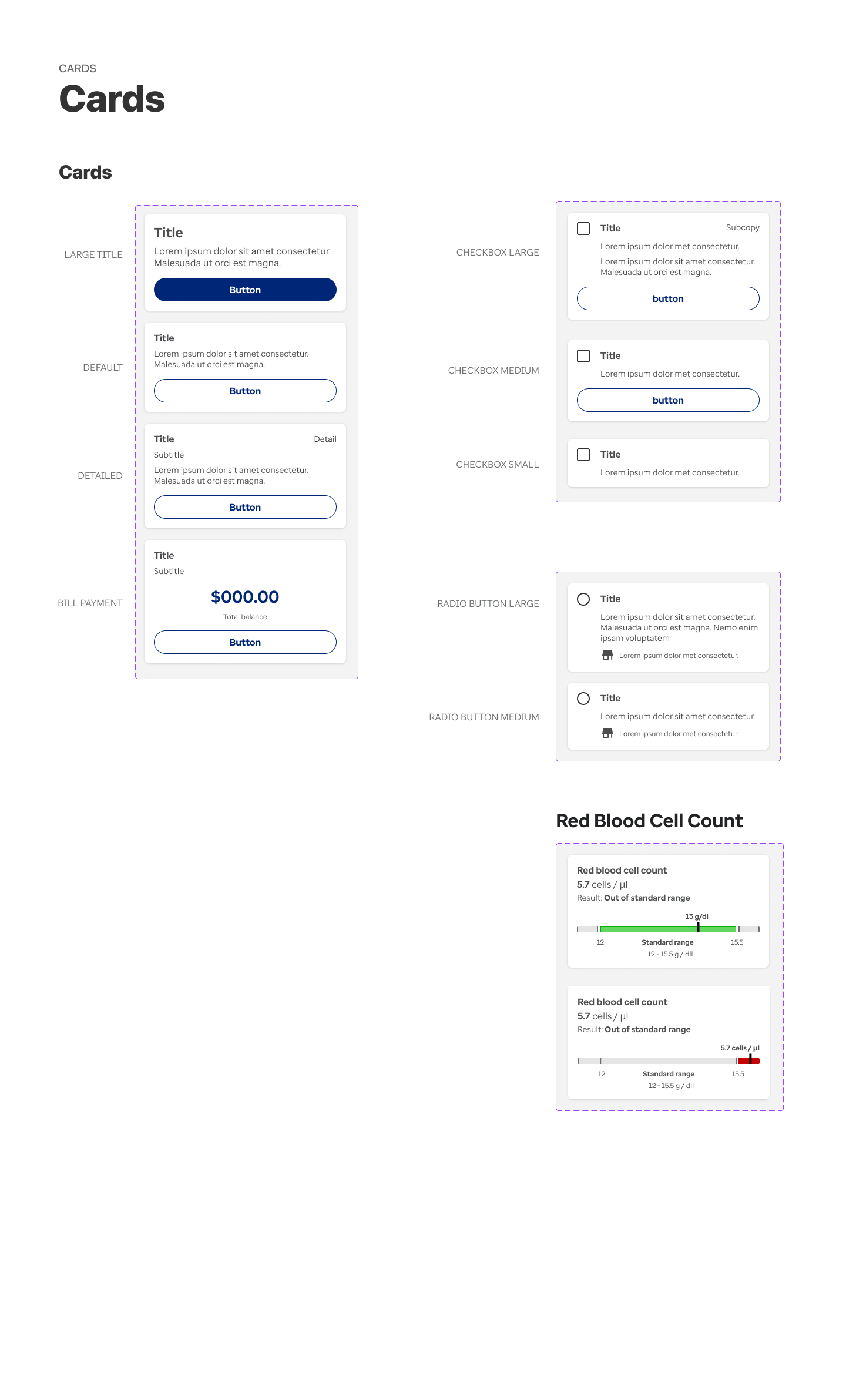 An entire mobile design system was produced and the was used by the mobile team. Further maintenance was performed requiring more components and updating current ones. Only a few selected sets of components are shown.