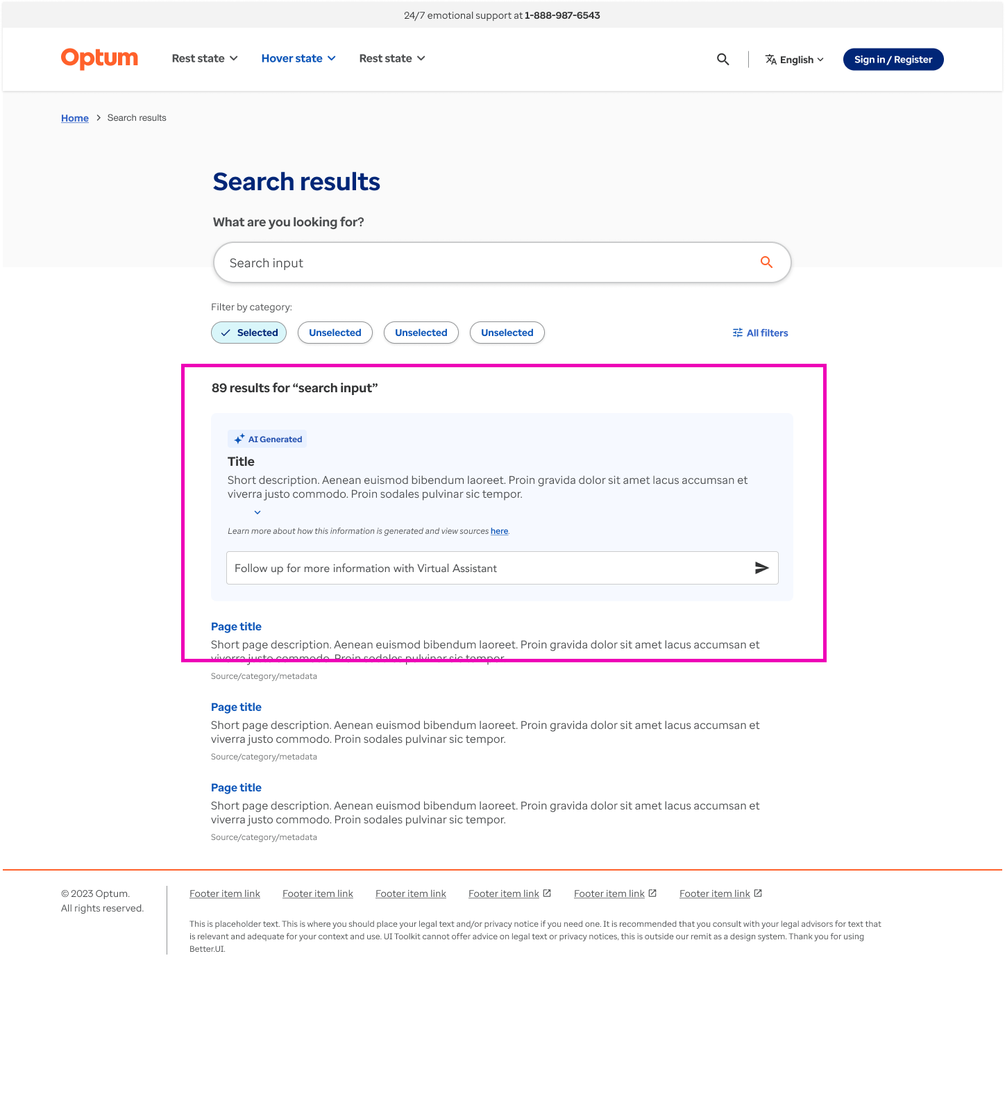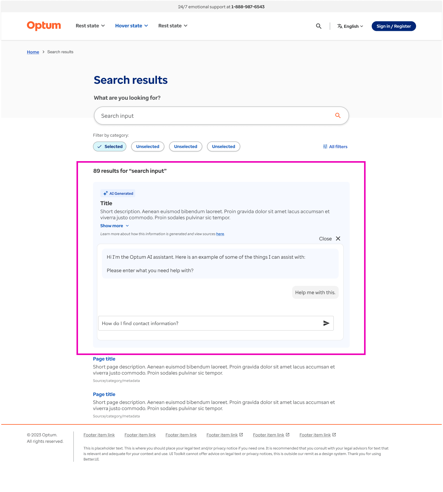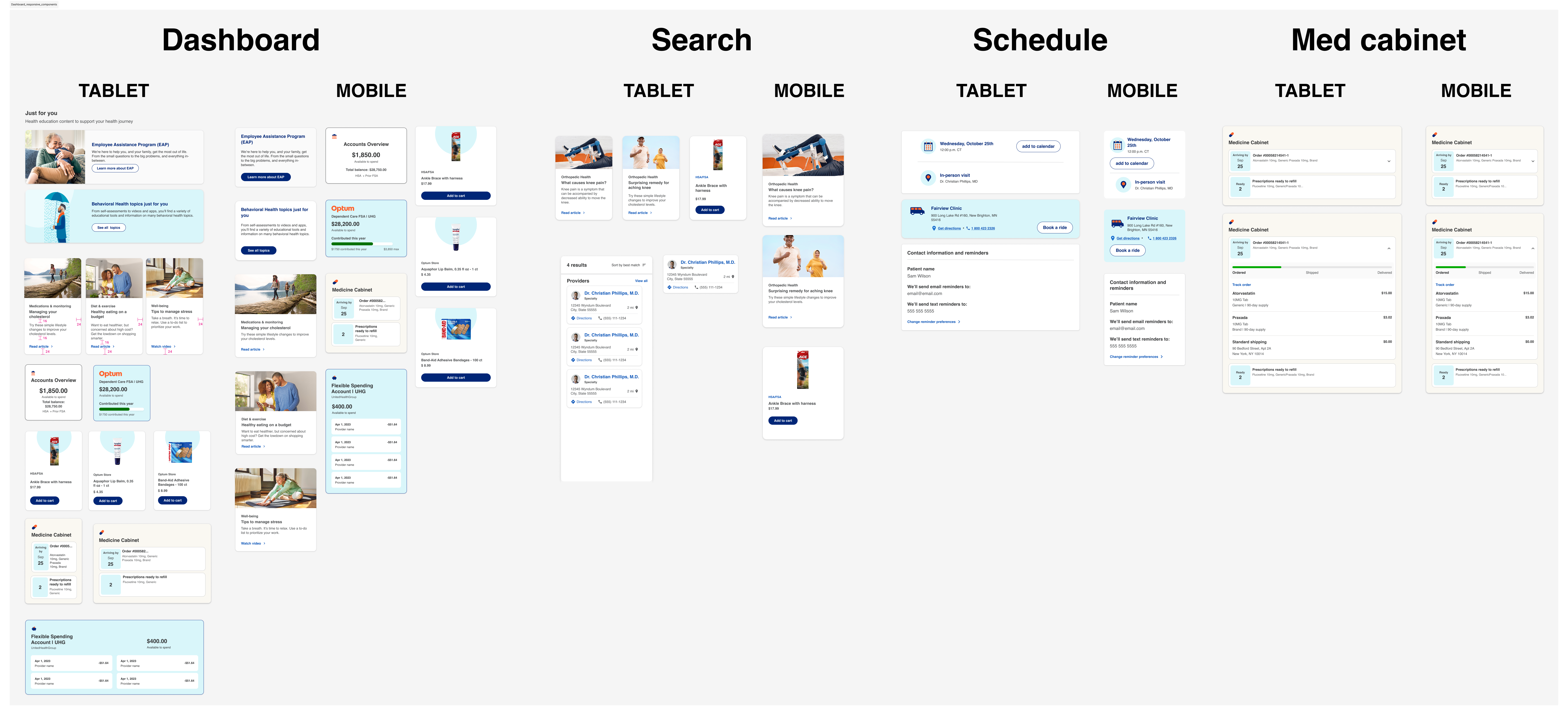 I discussed strategy with cross-functional teams and planned the funcionality and engineering limitations of a would-be dashboard for the MVP product Optum One. Produced components and assets that aligned with the needs and changes of the product discovery.